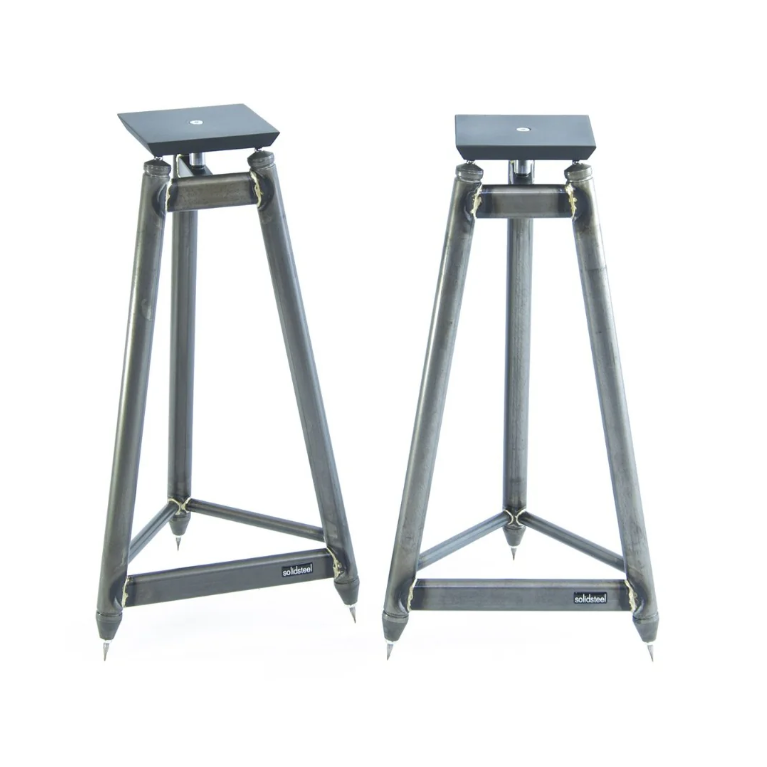 Напольная стойка для полочных колонок. Каркас изготовлен из стали, покрытый порошковой краской чёрного цвета. Три ножки изготовлены из нержавеющей стали чёрного или белого цвета. Напольные шипы из нержавеющей стали регулируются по высоте. Площадка под колонку изготовлена из ламинированного MDF в чёрной матовой отделке со специальным анти-скользящим покрытием или белый. Требует самостоятельной сборки.