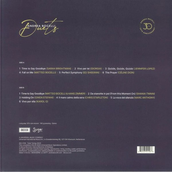 Описание виниловой пластинки ANDREA BOCELLI - Duets